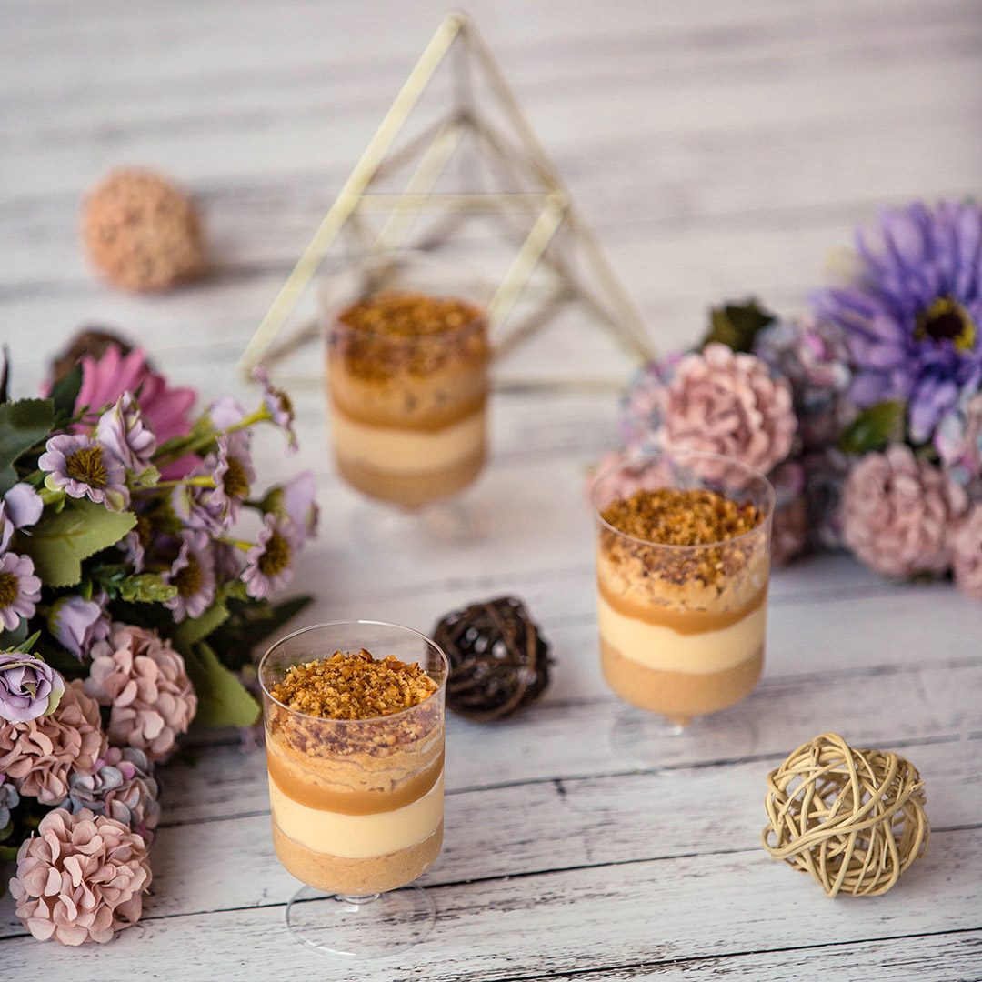 Plazma KaramelDeserti u čašicamaPodloga sa plazmom i puterom filovana karamel ganaž kremom i prelivena italijanski karamel topingom.
